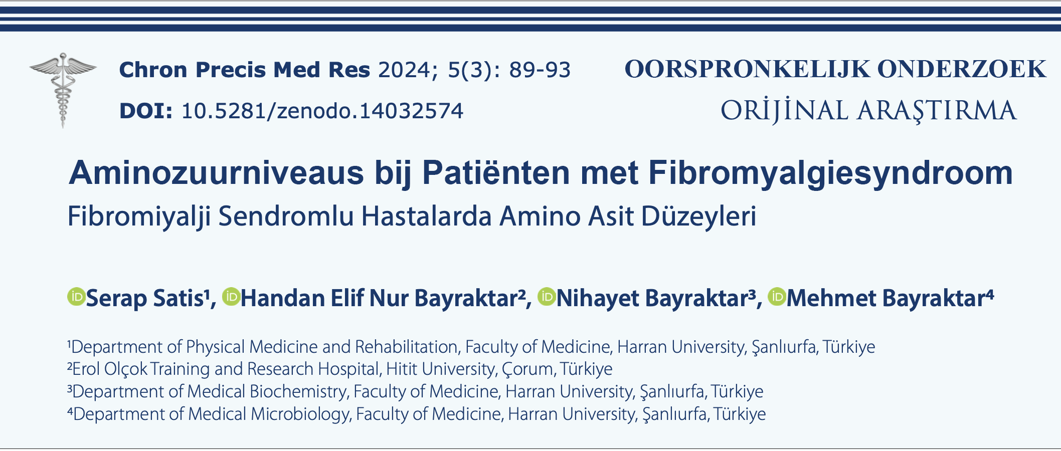 Aminozuur Niveaus bij patiënten met fibromyalgie syndroom (Harran University, Istanboel, 2024)