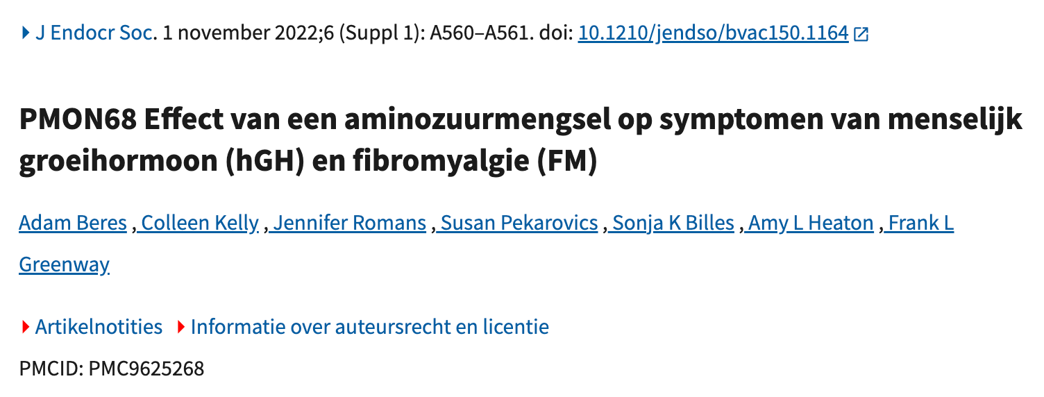 PMON68 – Effect van een op aminozuren gebaseerde mix op het menselijk groeihormoon (hGH) en fibromyalgie symptomen