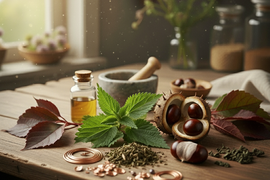 Red Vine Leaf: A traditional remedy rich in polyfenols, known for reducing fluid retention and leg swelling while supporting overall vascular health.